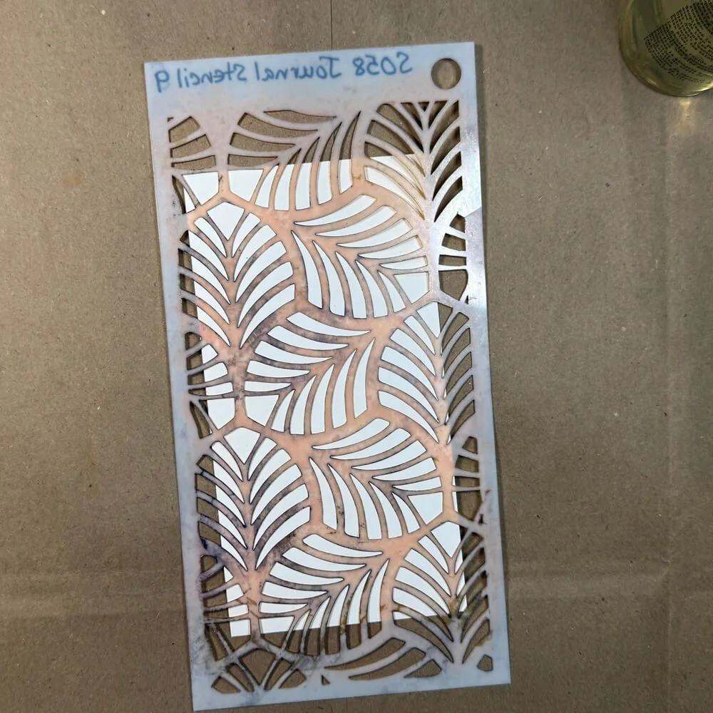 Step 3: Using the same ink, apply it through the stencil, making sure to apply the color a bit heavier to have that contrast.