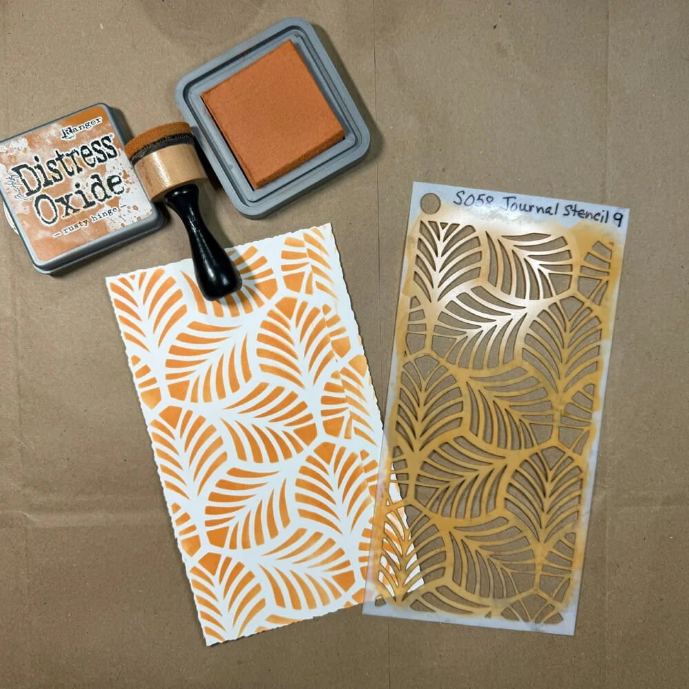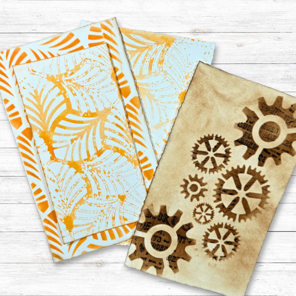 Have you ever wondered how to get those stenciled layered backgrounds that you see on cards or in art journals? Or maybe you’re looking to go back to basics with your stenciling techniques? In this tutorial, you will learn how to create two stenciled backgrounds using limited supplies that you can use in all your journals, cards, and tag-making projects.