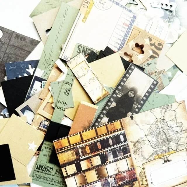 Step 1: Grab all your bits and bobs of scrap pieces of paper.