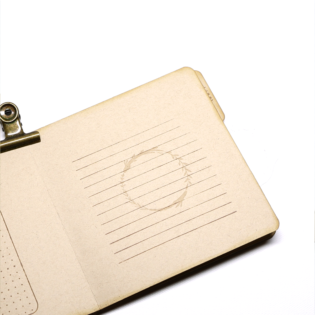 15. On three of the Journal File XLs, use the “Highlights from Today” from the Ink with Journaling Cards set to stamp on the front left and back left with brown ink.