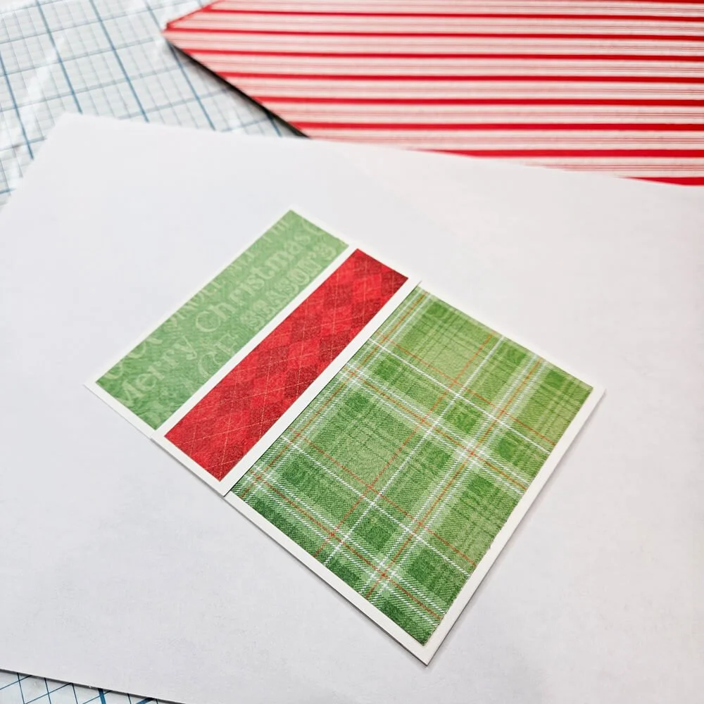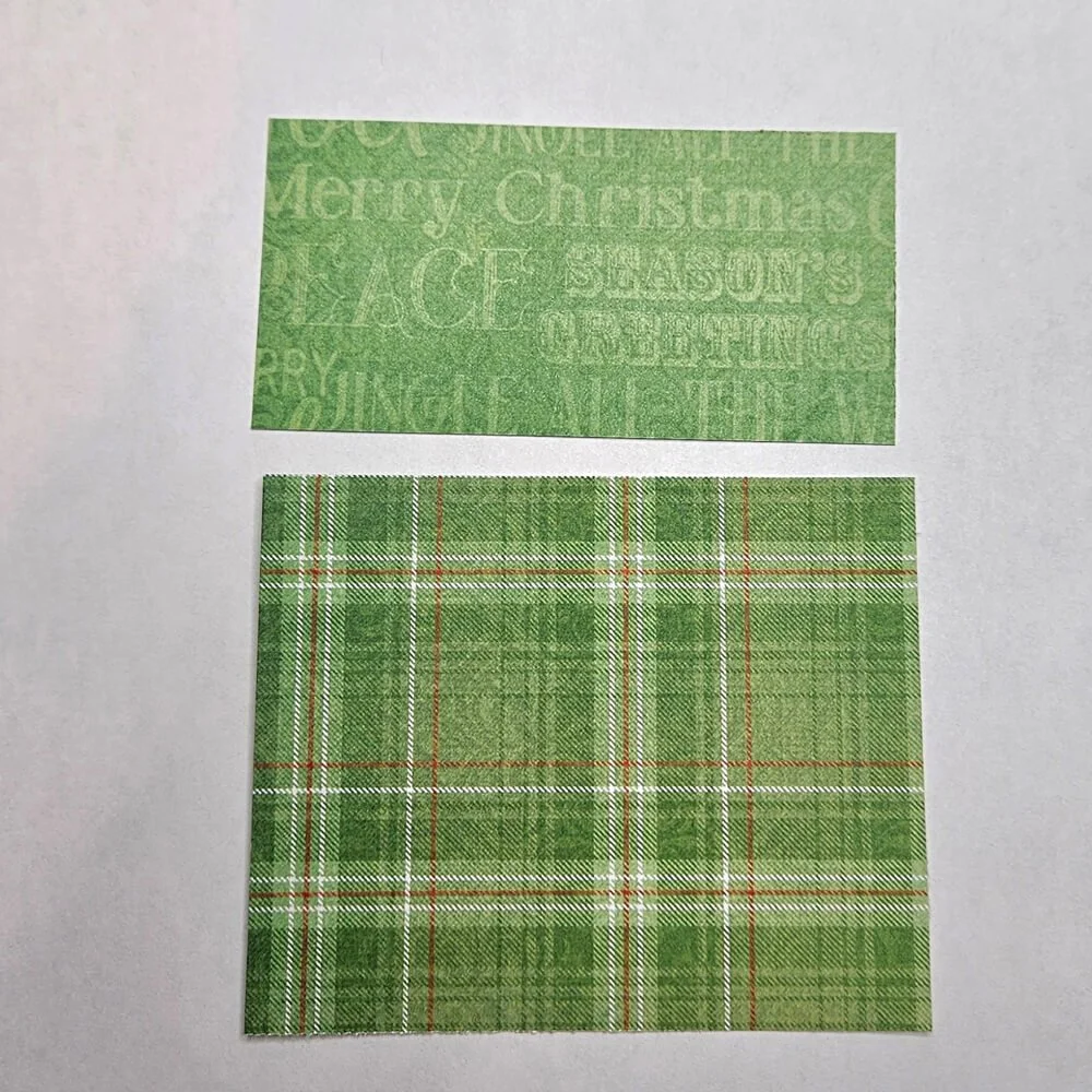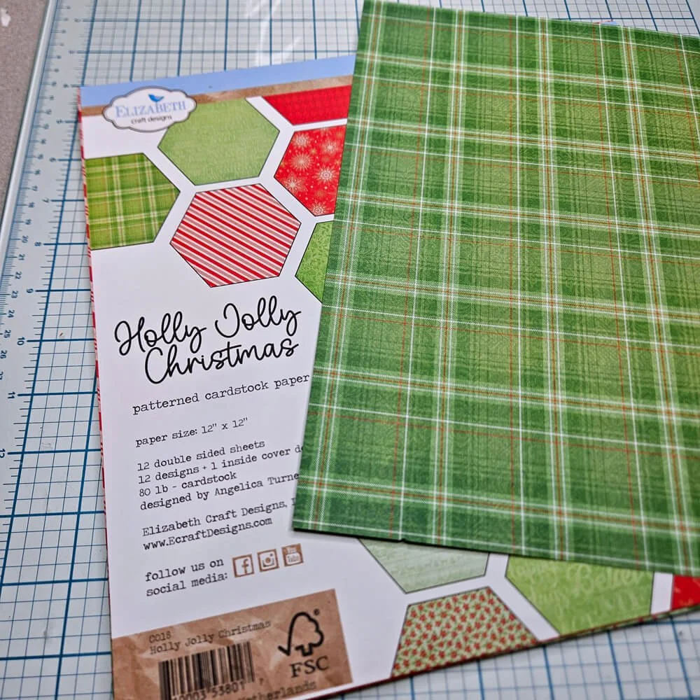 Step 2: Using the green plaid paper from the Holly Jolly Christmas paper pack cut a piece that measures 5 ¼” x 4”