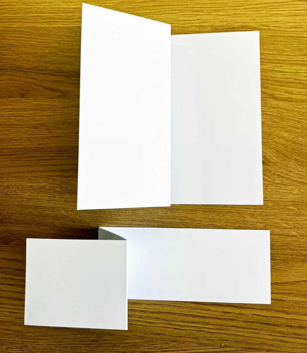 Rotate the card 90 degrees and trim 6cm off the bottom of your original card. Keep this strip of card! You should now have a 15 x 15cm card and a long strip measuring approximately 30 x 6cm (it will be slightly under if using A4).