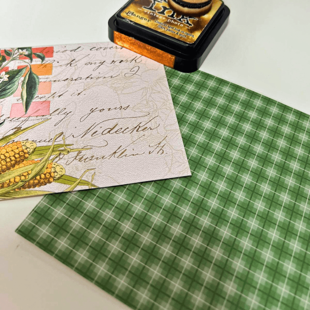 Step 3: Next, cut a piece of design paper, measuring 4.5 by 4.5 inches. Ink all the edges. I inked all the edges of all my pieces in this project.