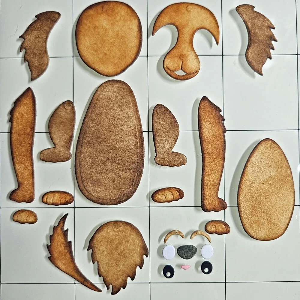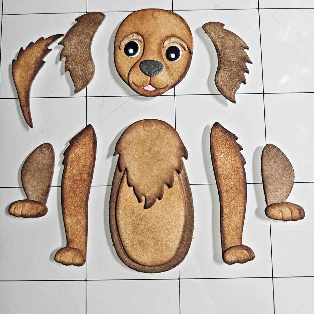 Step 1: I start by die-cutting all the dog elements from Soft Finish Cardstock and coloring them with Distress Oxide ink in different shades of brown.