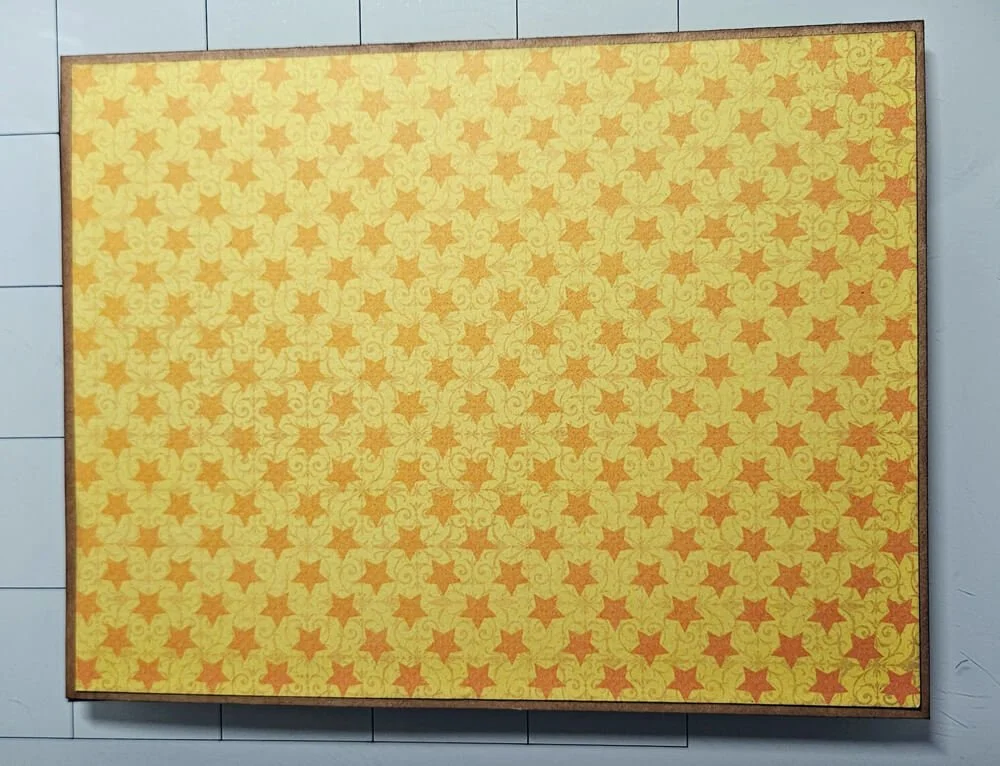 Step 8: I made the card base from kraft cardstock with some patterned paper on top. The paper is also from the dog collection.