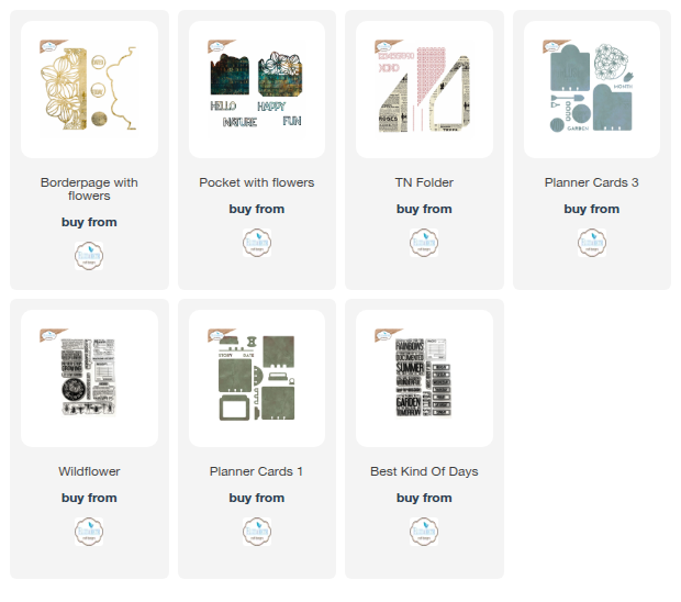 Step 1: As you can see in the photo, I die-cut several elements from the Botanical Blend release. I used: Border Page with Flowers (2277), Pocket with Flowers (2278), TN Folder (2279). Each of the first two dies also includes a solid piece, which I cut from vellum. I glued the vellum behind the flower cut-outs, as well as behind the element from the TN Folder, creating ‘closed’ elements and a softer, delicate look.