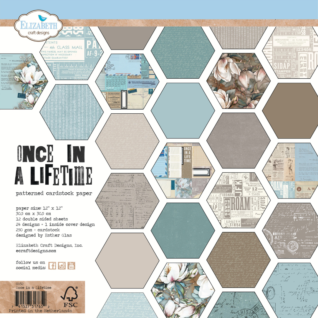 The “Once in a Lifetime” Patterned Cardstock Paper is part of the Once in a Lifetime Collection from Planner Essentials. This versatile paper pack features double-sided sheets with unique designs, including script, florals, and text in a soft color palette. With various shades of blue, brown, and green, it’s perfect for creating beautiful planners, cards, tags, and more. It’s an Ideal weight to layer, fold, and die-cut, ensuring effortless creativity for planners and beyond. Here are a few of the papers for inspiration!