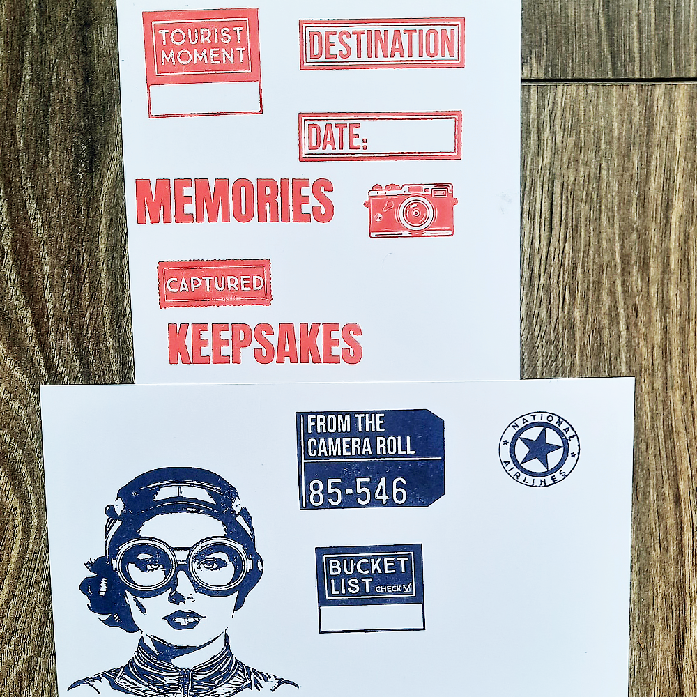 5. Using Note Pieces stamp (CS253), stamp the following pieces. This will allow you a space to write details of your travel.